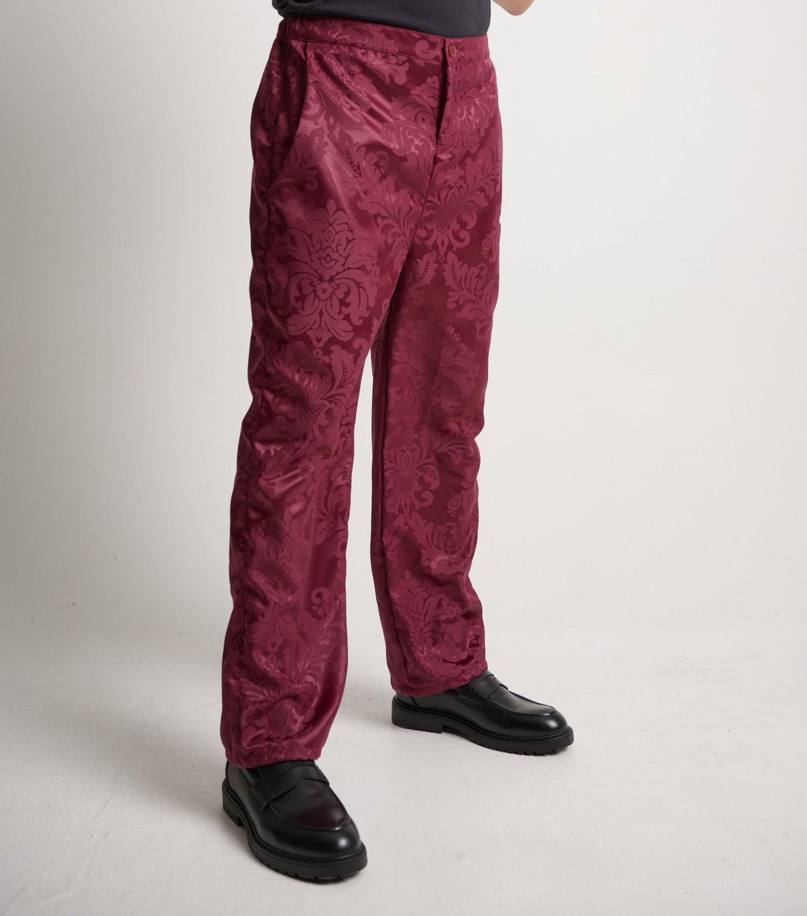 – Tejido damasco jacquard satinado burdeos (burgundy jacquard satin damask)